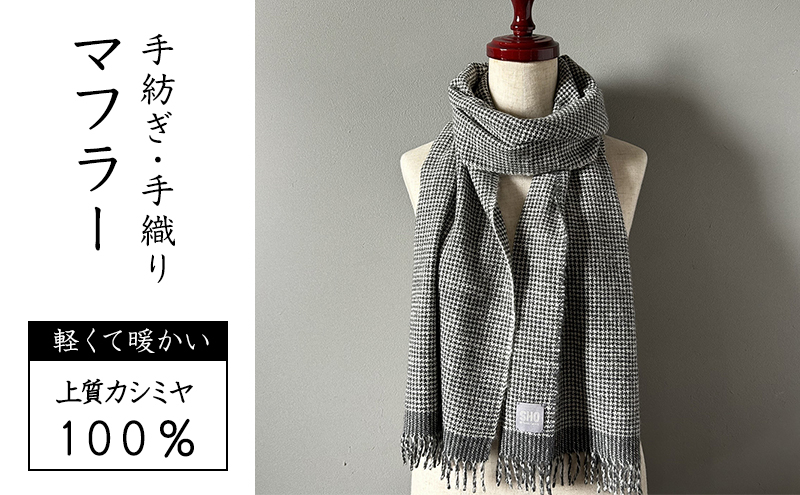 チョイス限定 マフラー 翔工房 上質カシミヤ100% 手紡ぎ・手織りマフラー 平千鳥模様 チャコールグレー 男女兼用 カシミヤ 冬 雑貨