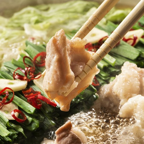 「もつ鍋みそ味と醤油味」&「水炊き」博多の鍋を食べ比べ。鍋のシメは当社自慢のマルゴめん(米粉麺)
