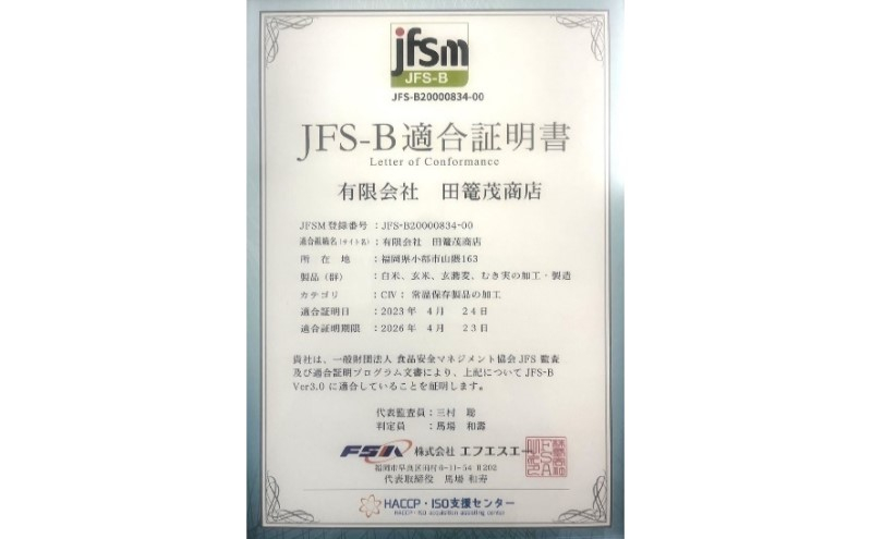 信頼と品質の田篭茂商店より