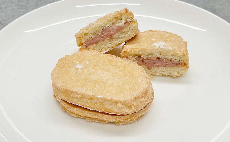 | 容量 | あまおうダックワーズ10個入り1箱。 いちごは小郡市の農園で採取された「あまおう」をコンフィチュールとセミドライに加工して使用。 ※小郡市内で製造されたいちごを100%使用し、区域外で製造されたダックワーズ |