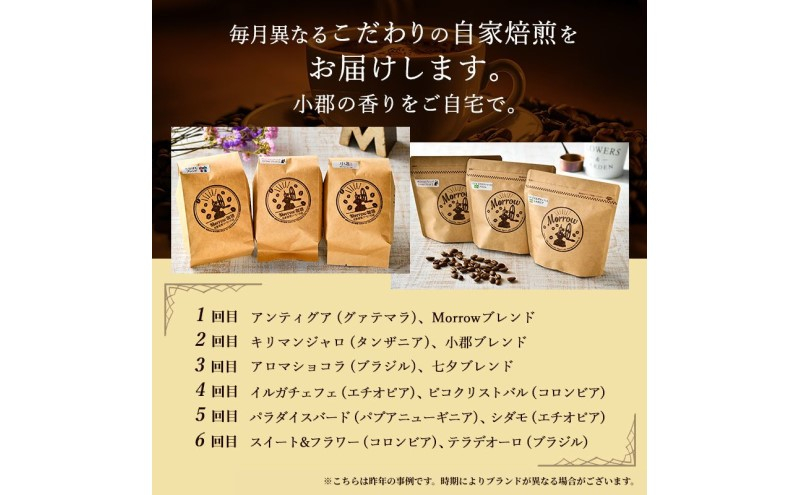 Morrow珈琲6ヵ月定期便&コーヒーミル・スマートG【増量】レギュラーコーヒー 珈琲 コーヒー 珈琲粉 コーヒー豆 珈琲豆 ドリップコーヒー ドリップ 自家焙煎珈琲 自家焙煎コーヒー 6回 お楽しみ 福岡 福岡県 小郡市