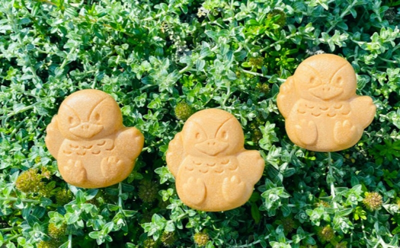 オリジナルの型で愛らしい鴨の形をした最中「かもなか。」をつくりました。