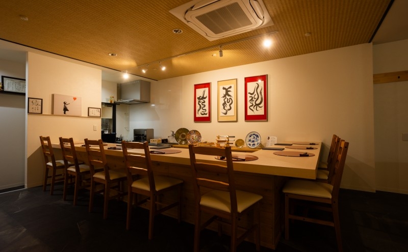 白を基調とした洗練された店内に木製のカウンターが温かみを添え、高級感ある空間で至福のひとときをお過ごしいただけます。