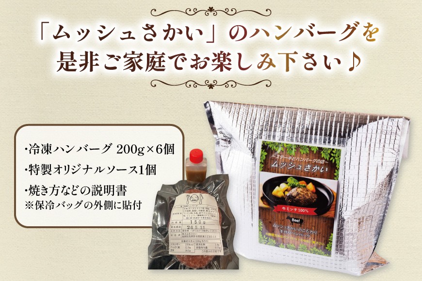 牛ミンチ100% ジューシーなTHE ハンバーグ ハンバーグ 手ごねハンバーグ 200g 6個 個食用ソース付き [さかい 福岡県 筑紫野市 21760544] 肉 牛肉 牛ミンチ 牛ハンバーグ 惣菜 おかず 個包装 手作り お弁当 冷凍