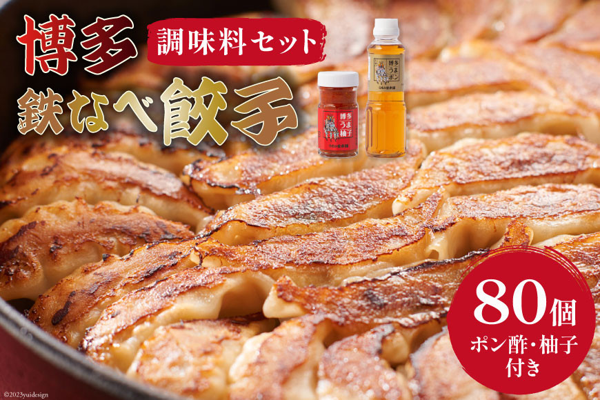 カリカリ食感の一口サイズの博多鉄なべ餃子 [博多鉄なべ餃子調味料セット] 餃子80個 & 博多うまポン300ml×1 & 博多うま柚子60g×1 / うまか堂本舗 / 福岡県 筑紫野市 [21760424] 餃子 ぎょうざ ポン酢 ぽん酢 柚子胡椒 柚子こしょう