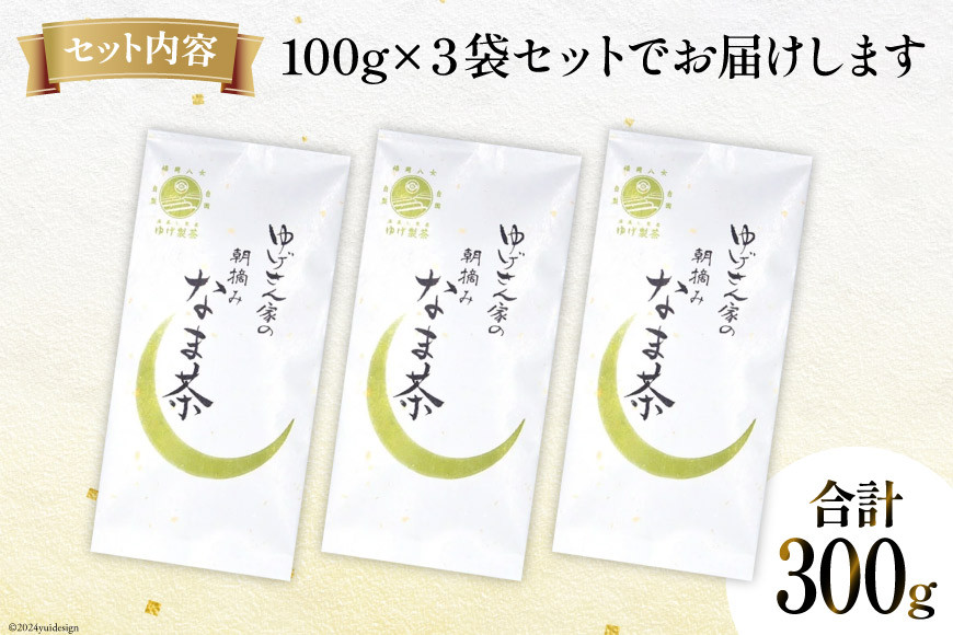 プレゼントだけでなく、ご家庭用にも。 お茶 八女茶 ゆげさん家の朝摘みなま茶 300g(100g×3袋)[Esprit 福岡県 筑紫野市 21761023] 茶葉 新芽 煎茶 摘みたて 茶殻