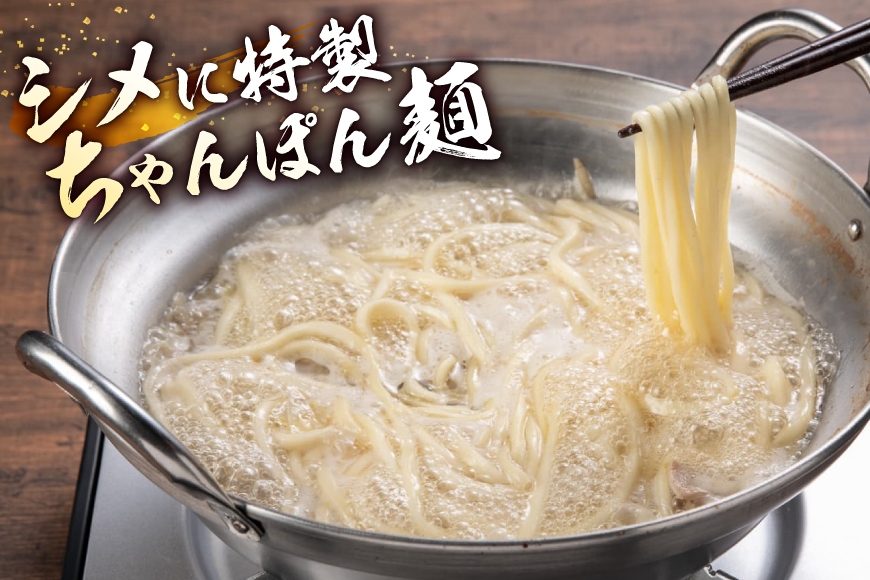 モツは国産和牛の小腸のみをたっぷり400g、シメにもつ鍋用につくられた特製のちゃんぽん麺を3玉をセットしました。