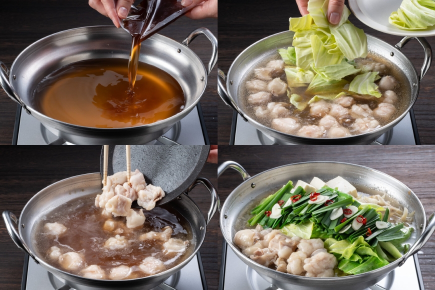 ニンニク・唐辛子が入っていないスープは、かつお・昆布のだしと程よい九州醤油が合わさり、一度飲むとまた飲みたくなるような日本人好みの味で、和牛モツの旨味をしっかりと感じながら後味はスッキリとしたもつ鍋に仕上げました。