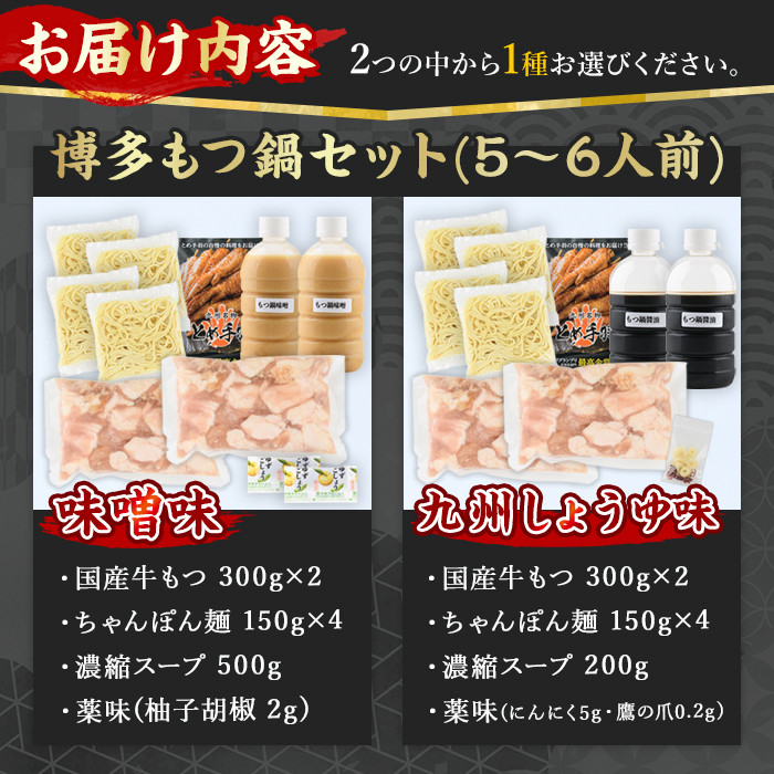 福岡が誇る名物料理、博多もつ鍋を全国の食卓へ <選べる!味噌味・九州しょうゆ味>博多もつ鍋セット 九州しょうゆ味(5~6人前)モツ鍋 セット 国産 醤油 牛肉 冷凍 牛モツ 小腸 ホルモン みそ 醤油 ちゃんぽん<離島配送不可>【ksg0181】【とめ手羽】