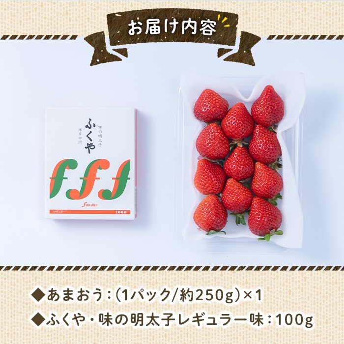 | 容量 | あまおう:1パック(250g) ふくや・味の明太子レギュラー味:100g |