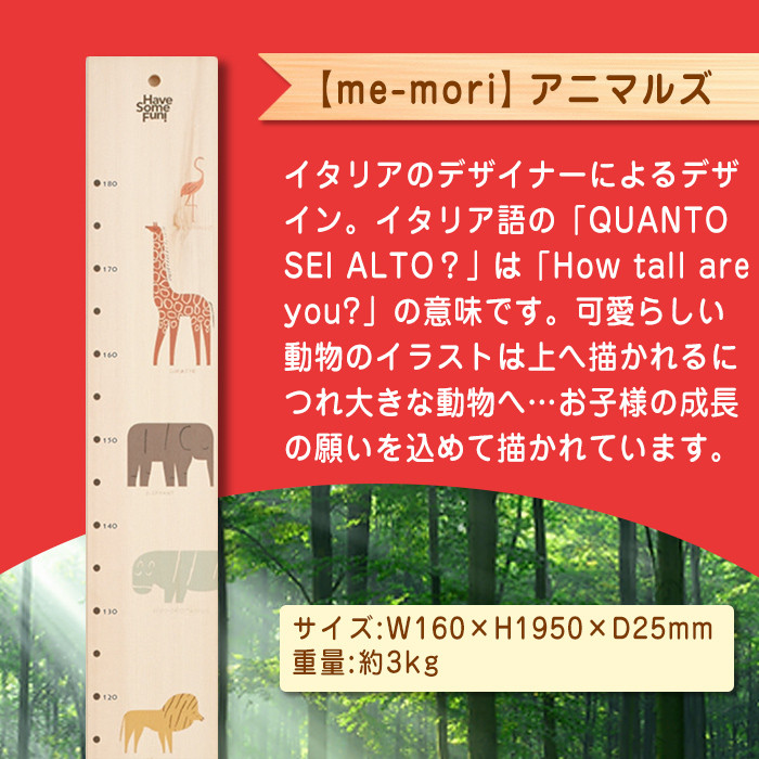 デザイナーズ木製身長計<me-mori>アニマルズ(1個)女の子 男の…