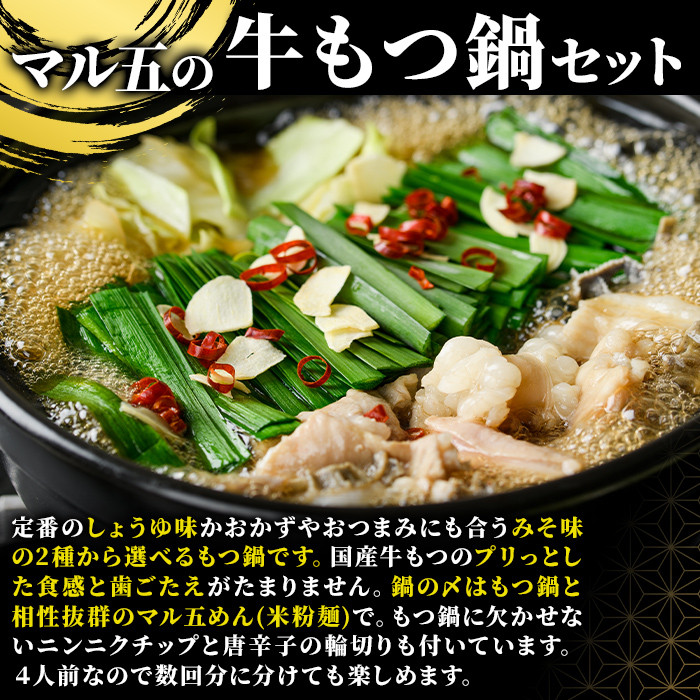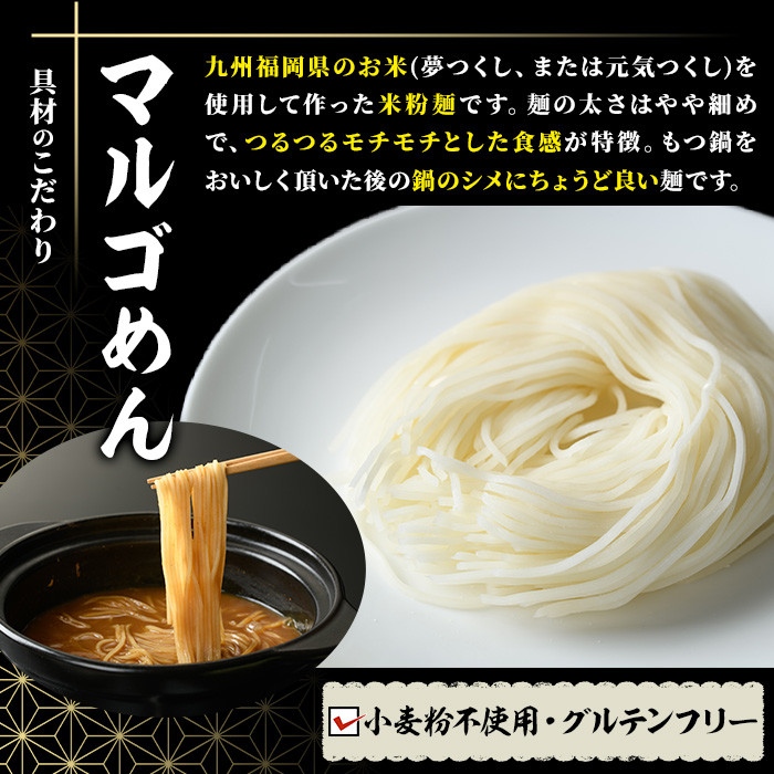鍋の〆はマルゴめん(米粉麺) <醤油味・味噌味が選べる>国産牛もつ鍋 〆のマルゴめんは福岡県産の米粉麺(計4人前)モツ鍋 もつ鍋セット 国産 味噌 牛モツ ホルモン<離島配送不可>【ksg0360】【マル五】