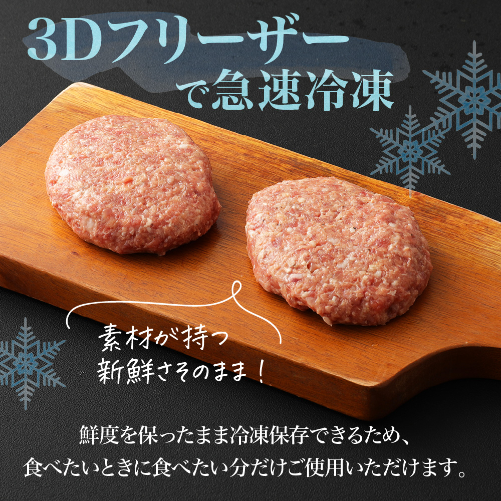 人の手により丁寧に成形し、3Dフリーザーで急速冷凍していますので、素材が持つ大切な「新鮮さ」と「美味しさ」はそのままで、まさに作り立ての味を楽しめる贅沢ハンバーグです。