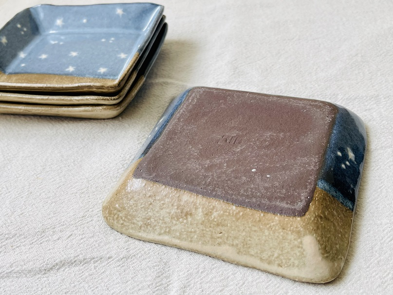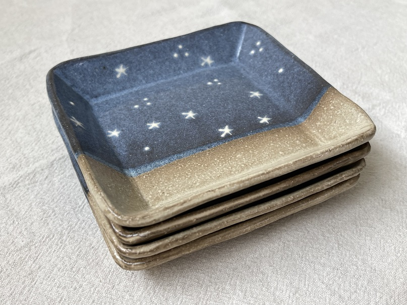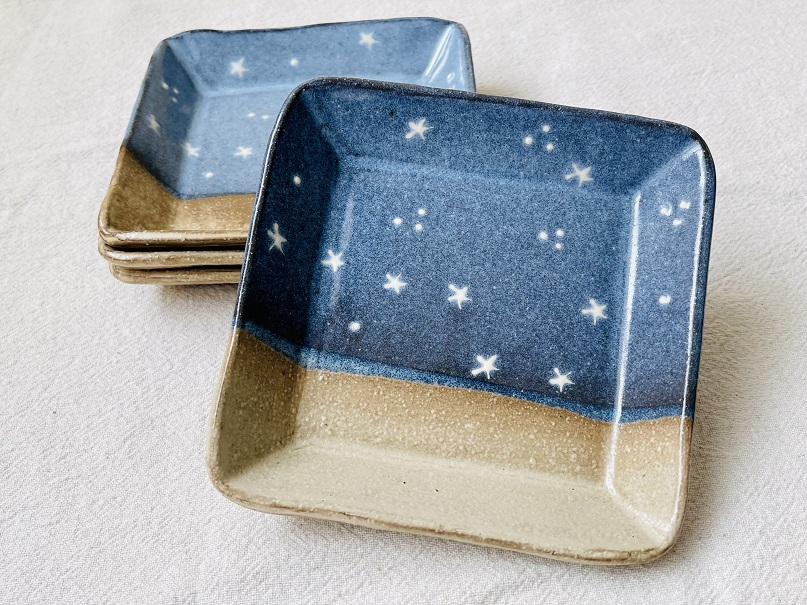 むなかたの夜の海辺をデザインした角小皿4枚セットです。