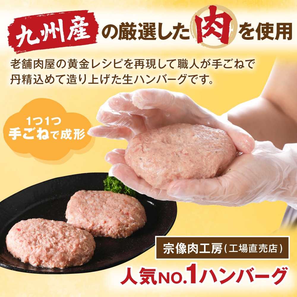 九州産の厳選したお肉を使用し、老舗肉屋の黄金レシピを再現して職人が1つ1つ手ごねで丹精込めて造り上げた生ハンバーグです。