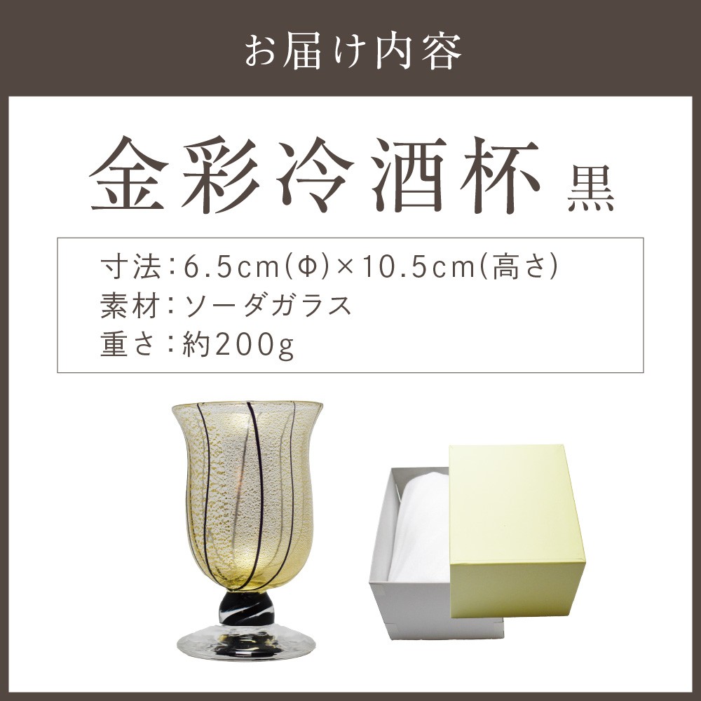 | 容量 | 【内容】金彩冷酒杯 黒 HA-03-4 1つ(寸法:6.5cm(Φ)×10.5cm(高さ)、重さ:約200g) 【原材料】素材:ソーダガラス 【原産地】福岡県宗像市田野 【のし対応】可 【表書き】可 |