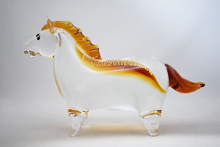 未来へ駆け抜ける希望を象徴する、午(うま)のガラス製干支の置物です。