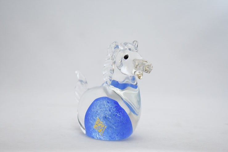 未来へ駆け抜ける希望を象徴する、午(うま)のガラス製干支の置物です。