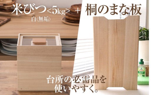 「米びつ(5kgタイプ)」+「桐のまな板」セット (株)増田桐箱店
