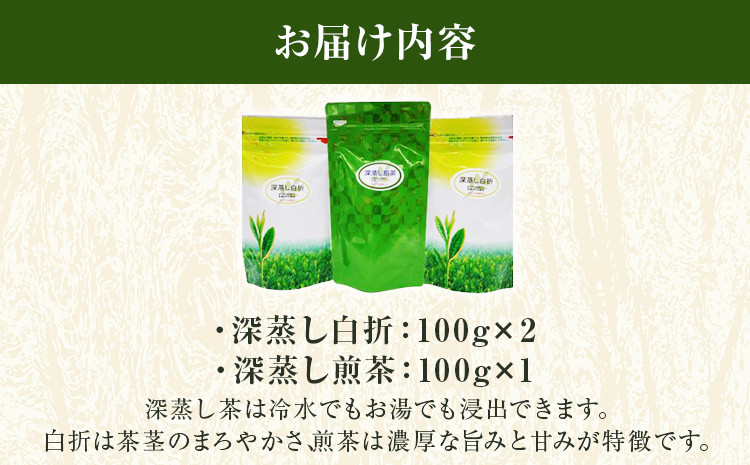 お茶詰め合わせセット(深蒸し白折・深蒸し煎茶) 100g×3袋 深蒸し茶 煎茶 白折 お茶 詰め合わせ 緑茶 八女茶