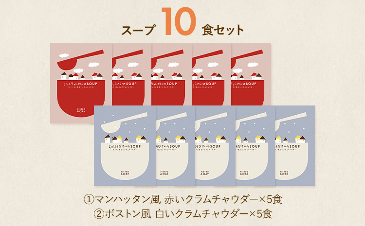 PIETRO A DAYのクラムチャウダー2種の詰め合わせ。 秋冬限定 赤と白のクラムチャウダー 10食セット 2種類×各5袋 PIETRO A DAY スープ ピエトロ 詰め合わせ 食べ比べ スープ セット レトルト ギフト 贈答 贈り物 食べるスープ 長期保存 保存食 備蓄 送料無料