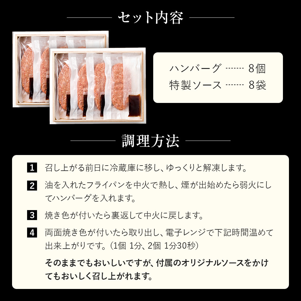 | 容量 | ハンバーグ 8個(150g/個) 特製ソース 8袋(20g/袋) |