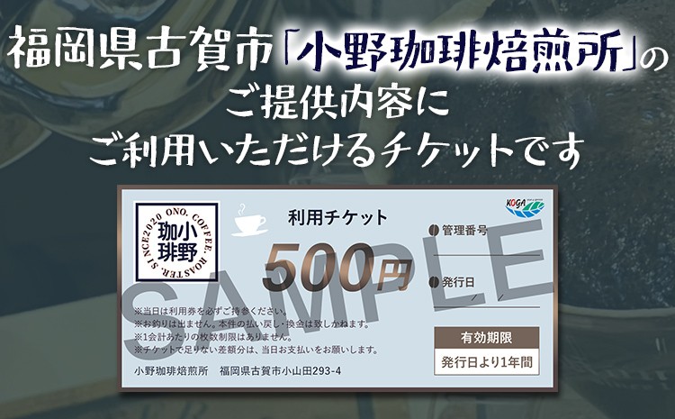 福岡県古賀市の焙煎所「小野珈琲焙煎所」でご利用いただけるチケット 小野珈琲焙煎所 利用チケット (500円×6枚) チケット 体験 珈琲所 珈琲 コーヒー カフェ ケーキ 福岡県 福岡 九州 グルメ メール便(ポスト投函)