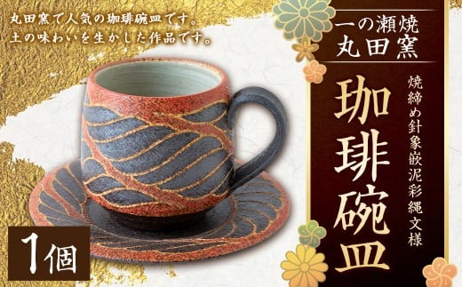 丸田窯 焼締め針象嵌泥彩縄文様 珈琲碗皿