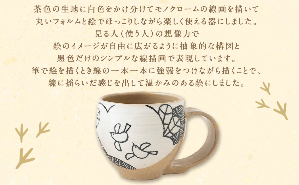 お礼品内容:絵付けマグカップ 図柄(鳥)