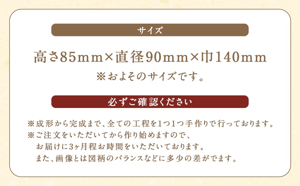 | 発送期日 | 一つ一つ手作りのためお届けに3ヶ月程かかります。 |
