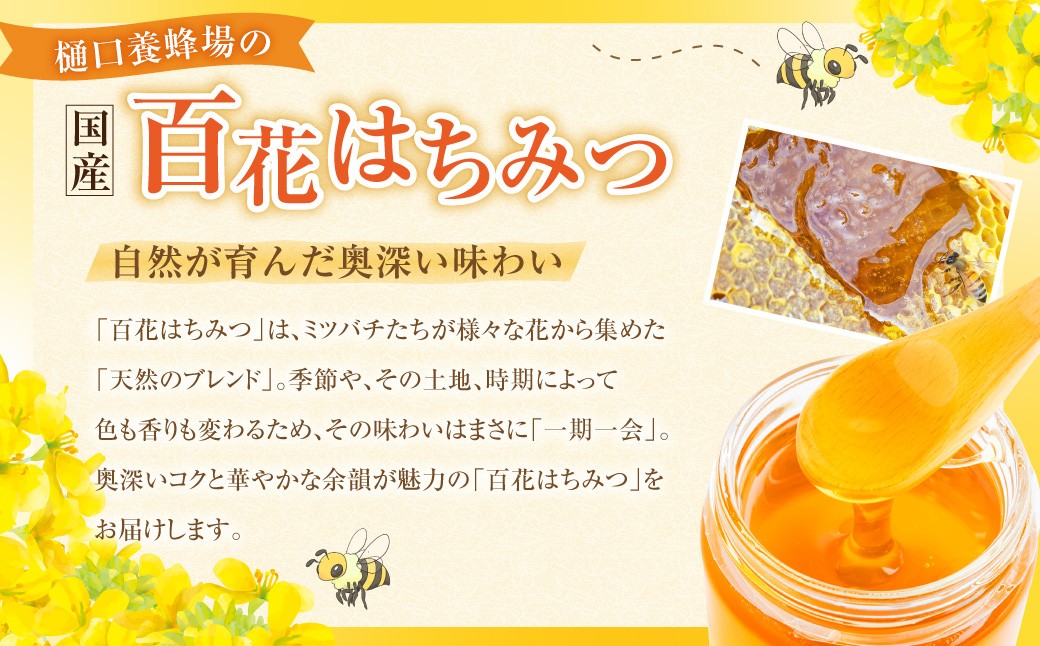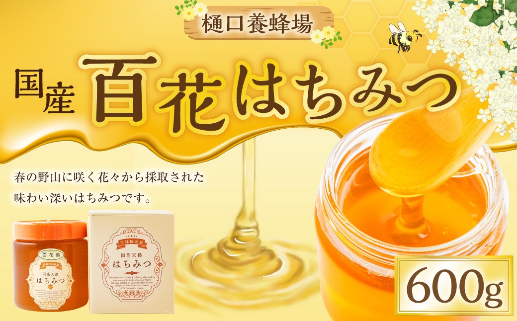 春の野山に咲く花々から採取された味わい深い はちみつです。 樋口養蜂場 国産百花はちみつ 600g ハニー 蜂蜜 ハチミツ