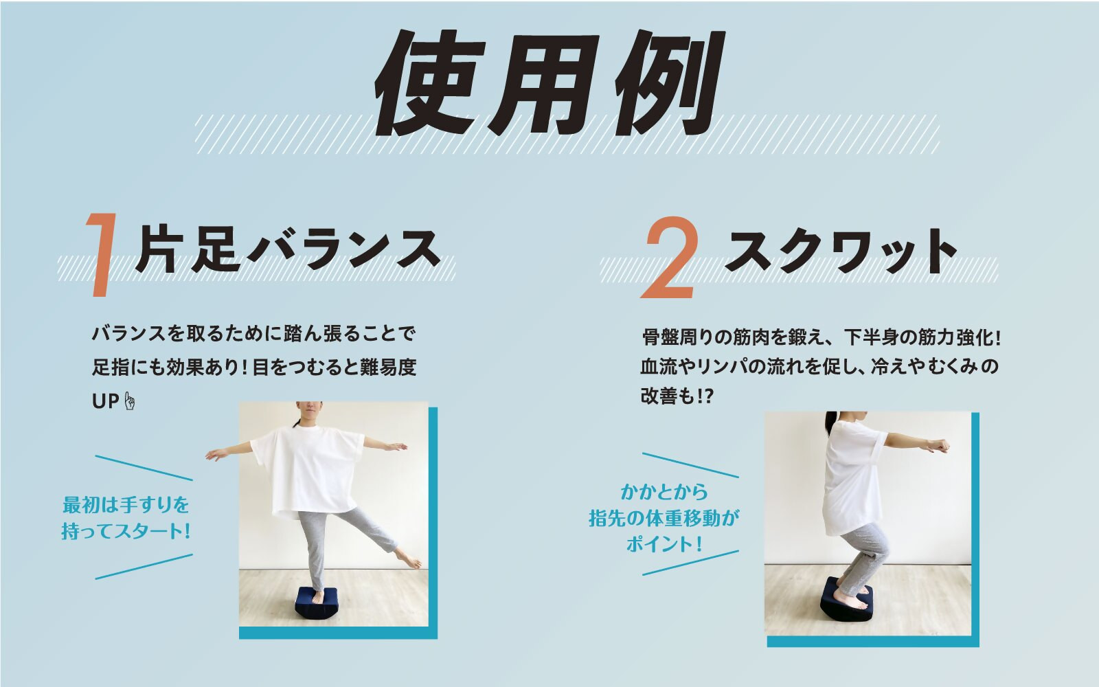 他にも、トレッグに乗って「片足バランス」で体幹を鍛えたり、「スクワット」で足を鍛えたり、