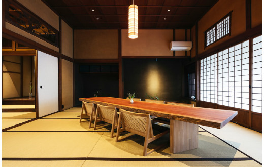 筑後吉井重要伝統的建造物群保存地区にある築100年を超える古民家を改修した、1日6組限定の分散型古民家宿「みなも」。