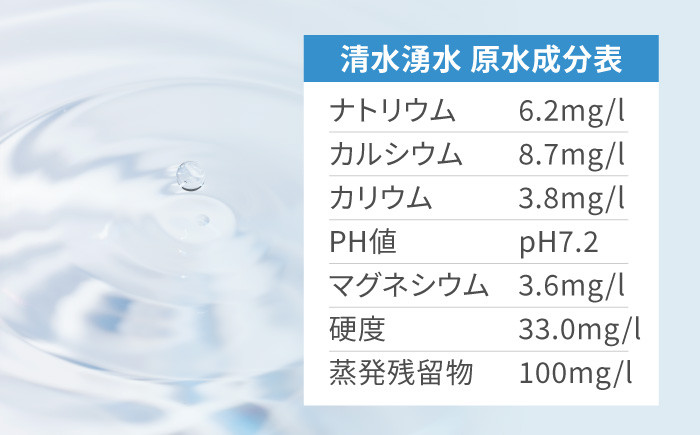 この自治体のポイントについてチョイス公式ポイント交換対象 日本名水百選“清水湧水”大自然に磨かれた天然水の風味を味わってください。 【6ヶ月定期便】赤ちゃんも安心して飲める 清水湧水 軟水 500ml 計48本 非加熱殺菌 ミネラルウォーター【株式会社清水】天然水の風味を損なわないよう非加熱殺菌 天然水 水 軟水 ペットボトル 500 500ml 定期便 6回定期便
