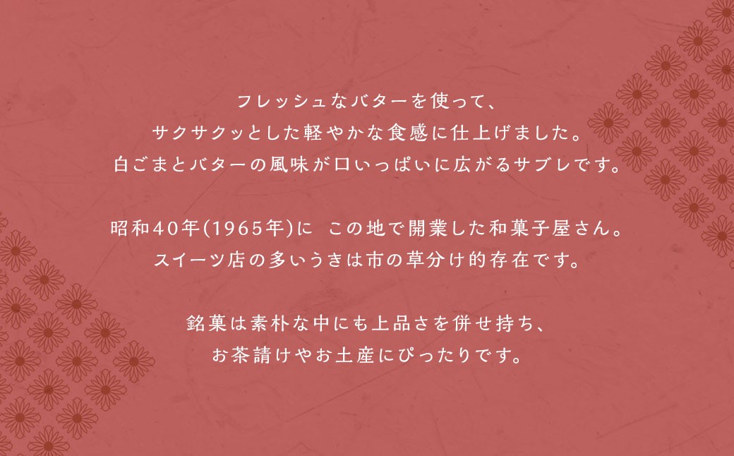 白ごまとバターの風味が口いっぱいに広がるサブレです。