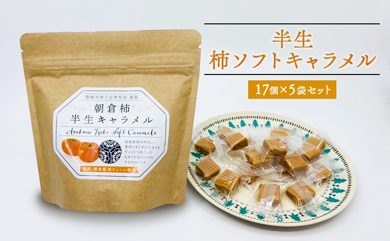 朝倉産柿のやさしい甘さをぎゅっと詰め込んだ、なめらかな口どけのキャラメルです★ お菓子 柿半生キャラメル 17個入り 80g×5袋 セット 朝倉柿 柿 キャラメル ソフトキャラメル