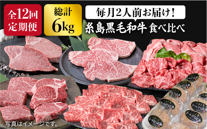 【全12回定期便】 糸島 黒毛和牛 食べ比べ セット 2人前 約 6 k…270,000 円 黒毛 和牛 ヒレ サーロイン 定期 ステーキ 焼肉 BBQ すき焼 しゃぶしゃぶ - 冷凍便