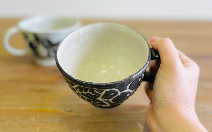 手びねりならではの、手のぬくもりが伝わる小花のマグ。