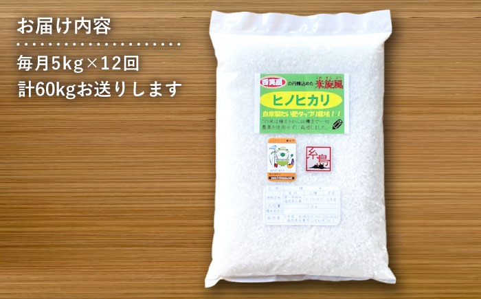 チョイスPayポイントと交換できる品 九州 福岡 糸島 お米 栽培期間中 農薬不使用 環境 山林 おにぎり 【令和7年産】【 全12回 定期便 】米 旋風 ヒノヒカリ 5kg 《糸島》【百笑屋】 [ABF022] 米 お米 白米 精米 定期便 ひのひかり