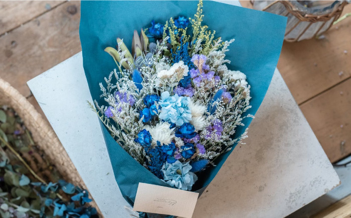 市外で生産された材料を使用し、市内において設計から制作に係る全工程を実施したドライフラワー。