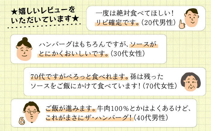 ・男性、40代、2人家族 「まじでご飯ががっつりいけます。牛肉100%とかよくあるけど、これがまさにザ・ハンバーグ!」