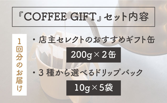 店主おすすめコーヒーギフト缶(200g×1缶)+ドリップパック(10g×5…