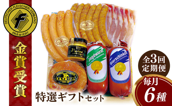 チョイスPayポイントと交換できる品 旨みたっぷりの本格ハムとウインナー。特別な贈りものにどうぞ! 【全3回定期便】【本場ドイツで連続金賞受賞】特選 ギフト セット 6種 詰め合わせ ( ハム / ソーセージ / ウインナー) 糸島市 / 糸島手造りハム [AAC025]