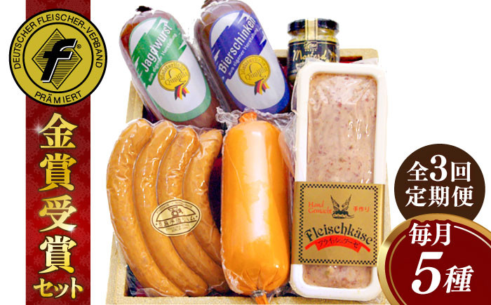 チョイスPayポイントと交換できる品 旨みたっぷりの本格ハムとウインナー。特別な贈りものにどうぞ! 【全3回定期便】【本場ドイツで連続金賞受賞】金賞 受賞 セット 5種 詰め合わせ ( ハム / ソーセージ / ウインナー) 糸島市 / 糸島手造りハム [AAC028]