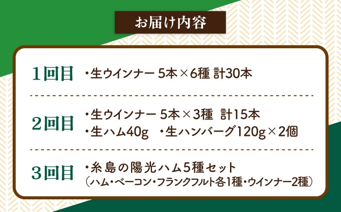 チョイスPayポイントと交換できる品 定期便 生 ウインナー ソーセージ ハンバーグ お肉 【全3回定期便】 ウインナー / ハンバーグ / ハム 月替り セット 糸島市 / 志摩スモークハウス 生ハム ベーコン [AOA038]