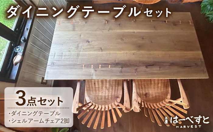 チョイスPayポイントと交換できる品 ダイニング アームチェア ダイニングテーブル 食卓 テーブル 椅子 セット 【ダイニングテーブル3点セット】ダイニングテーブル/シェルアームチェア2脚 糸島市 / 工房はーべすと [AYA059]