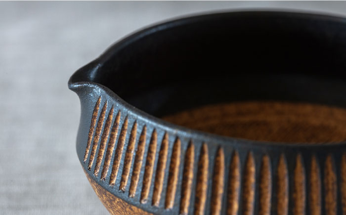 鉄釉の1種、伊羅保釉を施したすり鉢。