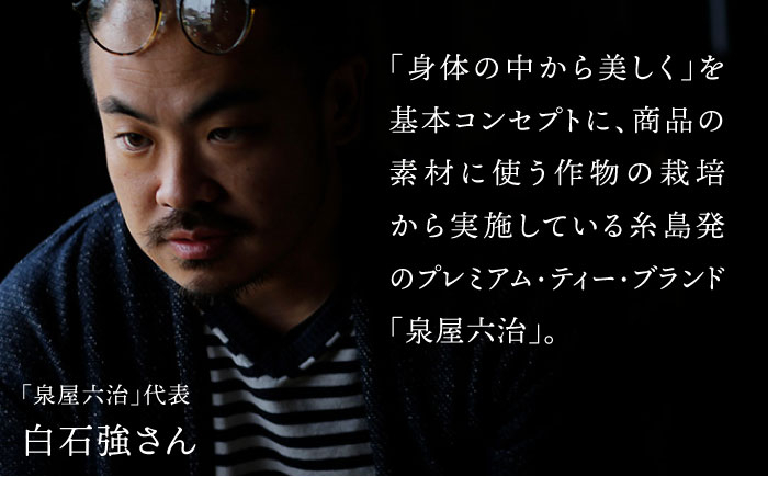 「身体の中から美しく」を基本コンセプトに、商品の素材に使う作物の栽培から実施している糸島発のプレミアム・ティー・ブランド「泉屋六治」。