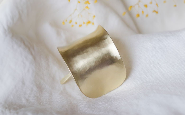 真鍮の板から手作業で、ひとつひとつハンマーで強弱をつけながら理想のカタチになるように何回も叩き、優しさのある丸みをつけています。