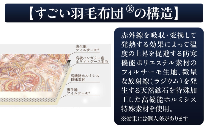 日本製 すごい羽毛布団 ハンガリー産グースダウン93% ホルミシス効果 洗える